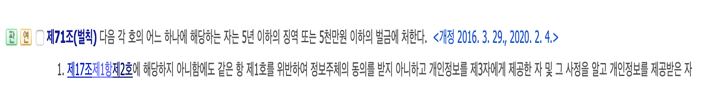 다행이 개인정보처리자가 아닌 일반직원에게 받은 개인정보라 형사처벌 대상에서는 빠져있죠?