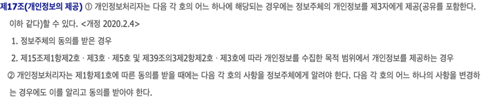 이런 개인정보처리자는 정보주체의 동의를 받은 경우 제3자에게 제공할 수 있다 라고 되어있습니다.
