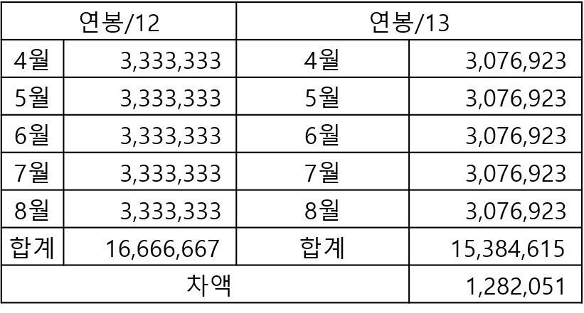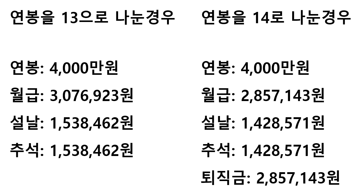 또하나 연봉을 13으로 나누어 설, 추석 상여를 포함하는 경우