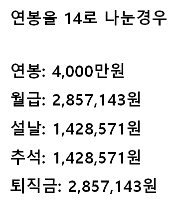마지막으로 연봉을 14로 나누어 퇴직금을 연봉에 포함시킨다면?